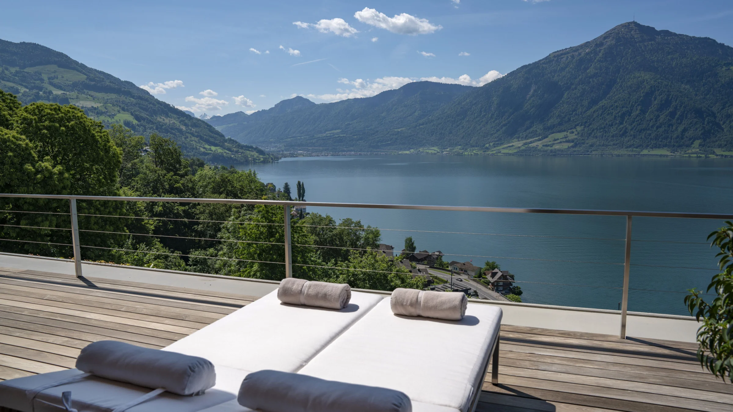 Moderne Terrassenwohnungen mit traumhaften Aussichten auf atemberaubende Landschaften. Stilvolle Wohnungen mit unverbaubarem Blick auf das Berg- und Seepanorama. Grosszügige Häuser in sonniger Lage und naturnaher Umgebung.