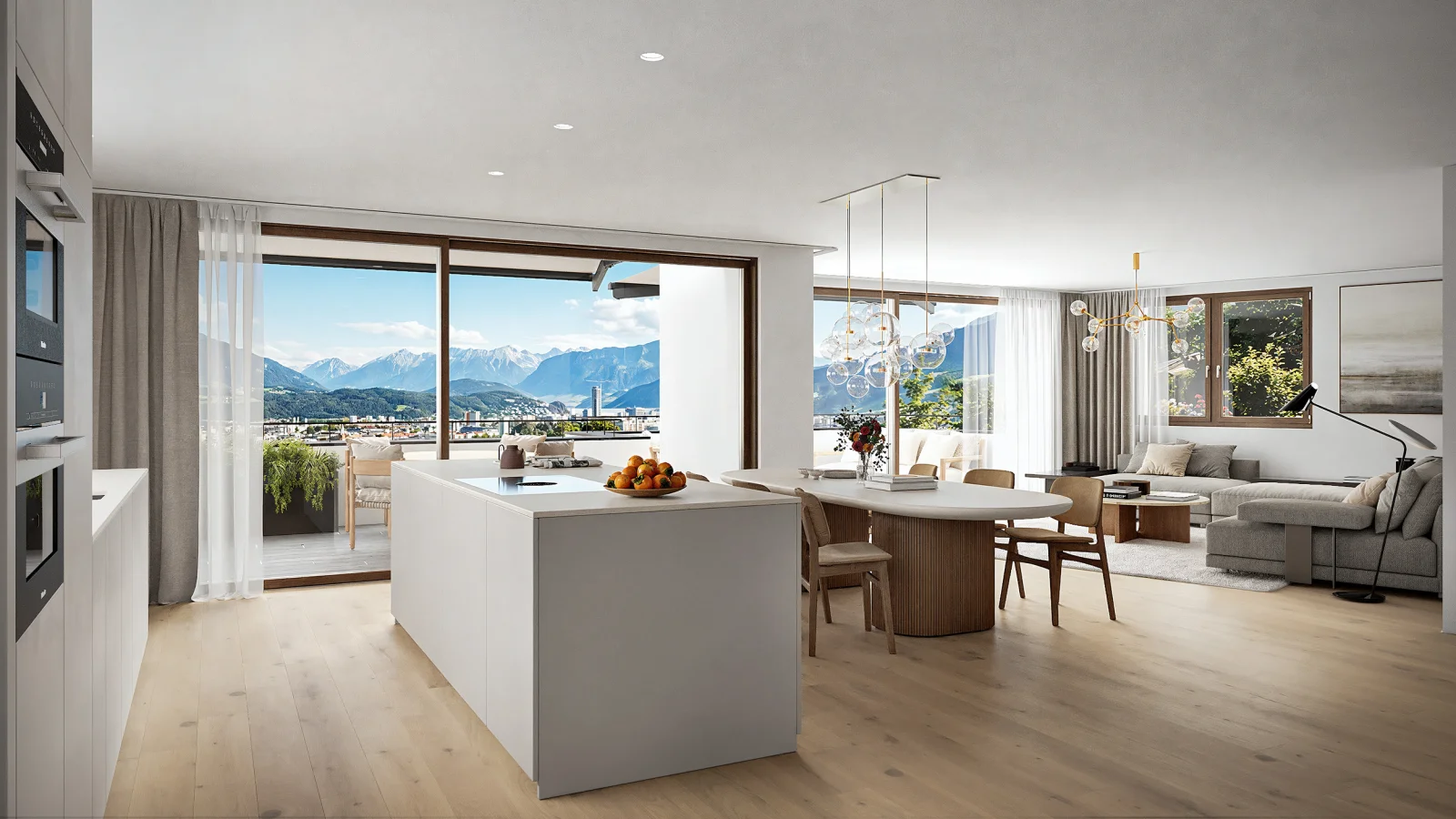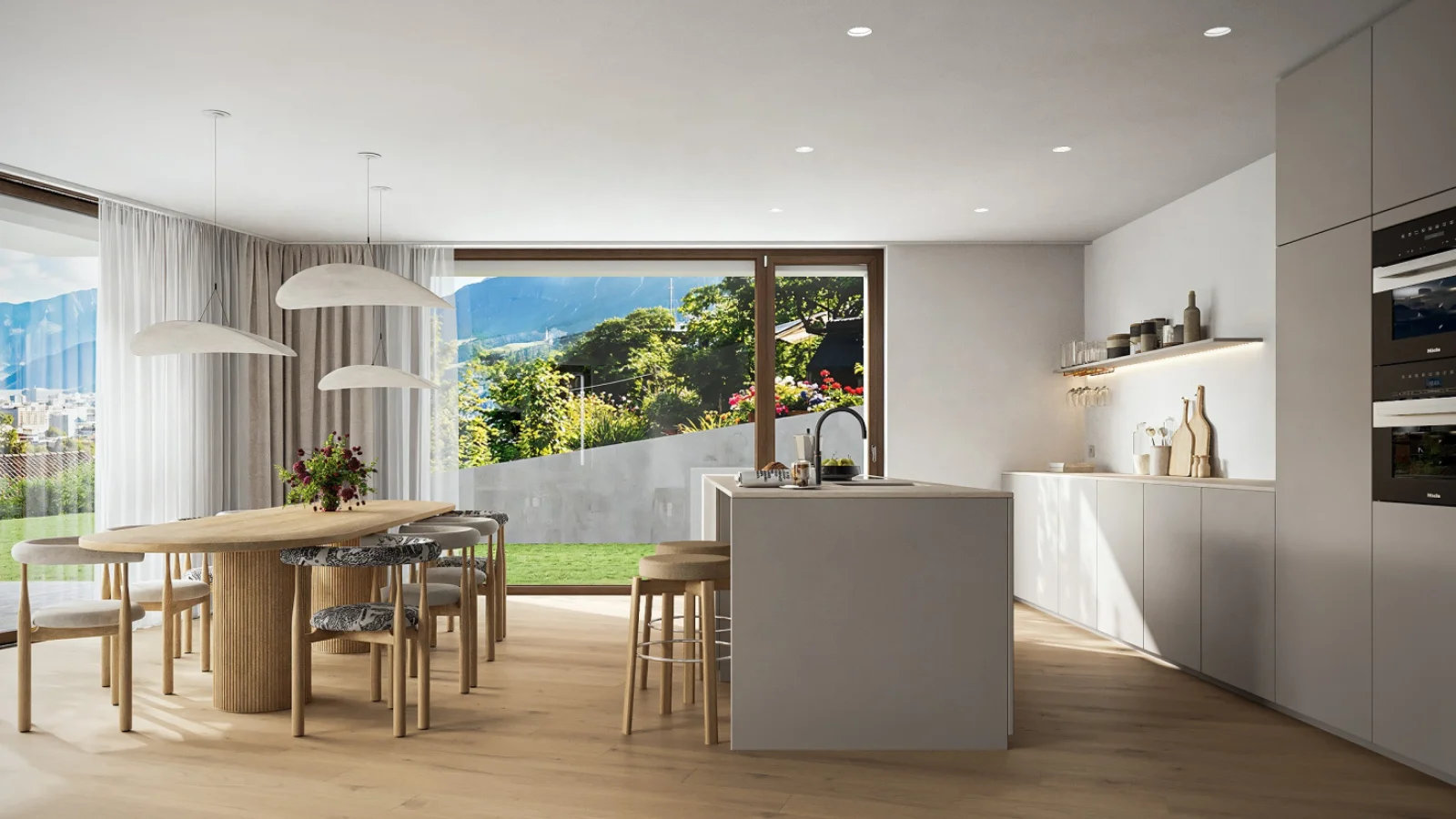 Moderne Terrassenwohnungen mit traumhaften Aussichten auf atemberaubende Landschaften. Stilvolle Wohnungen mit unverbaubarem Blick auf das Berg- und Seepanorama. Grosszügige Häuser in sonniger Lage und naturnaher Umgebung.